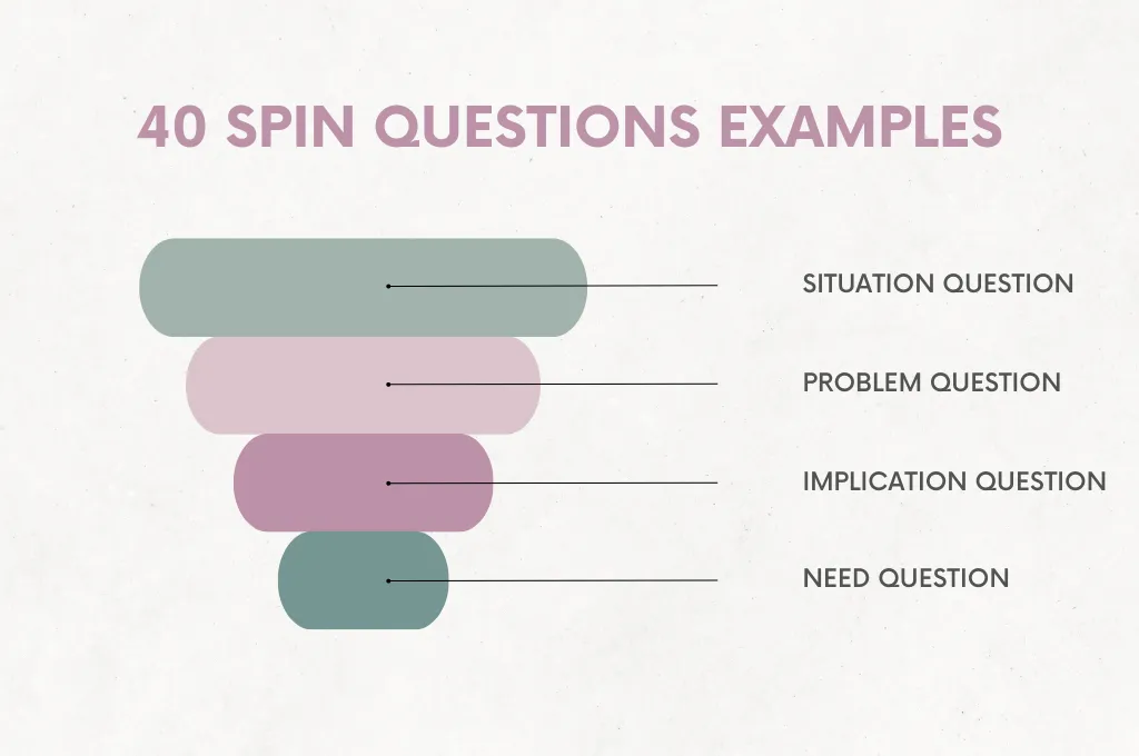 - Foundation for Further Inquiry: Information gathered through situation questions sets the stage for the subsequent Problem, Implication, and Need-Payoff questions.