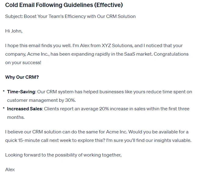 Clarity and Precision: Short emails force you to be clear and precise. This is particularly important for complex B2B products like CRM tools, where clarity can make or break a deal.