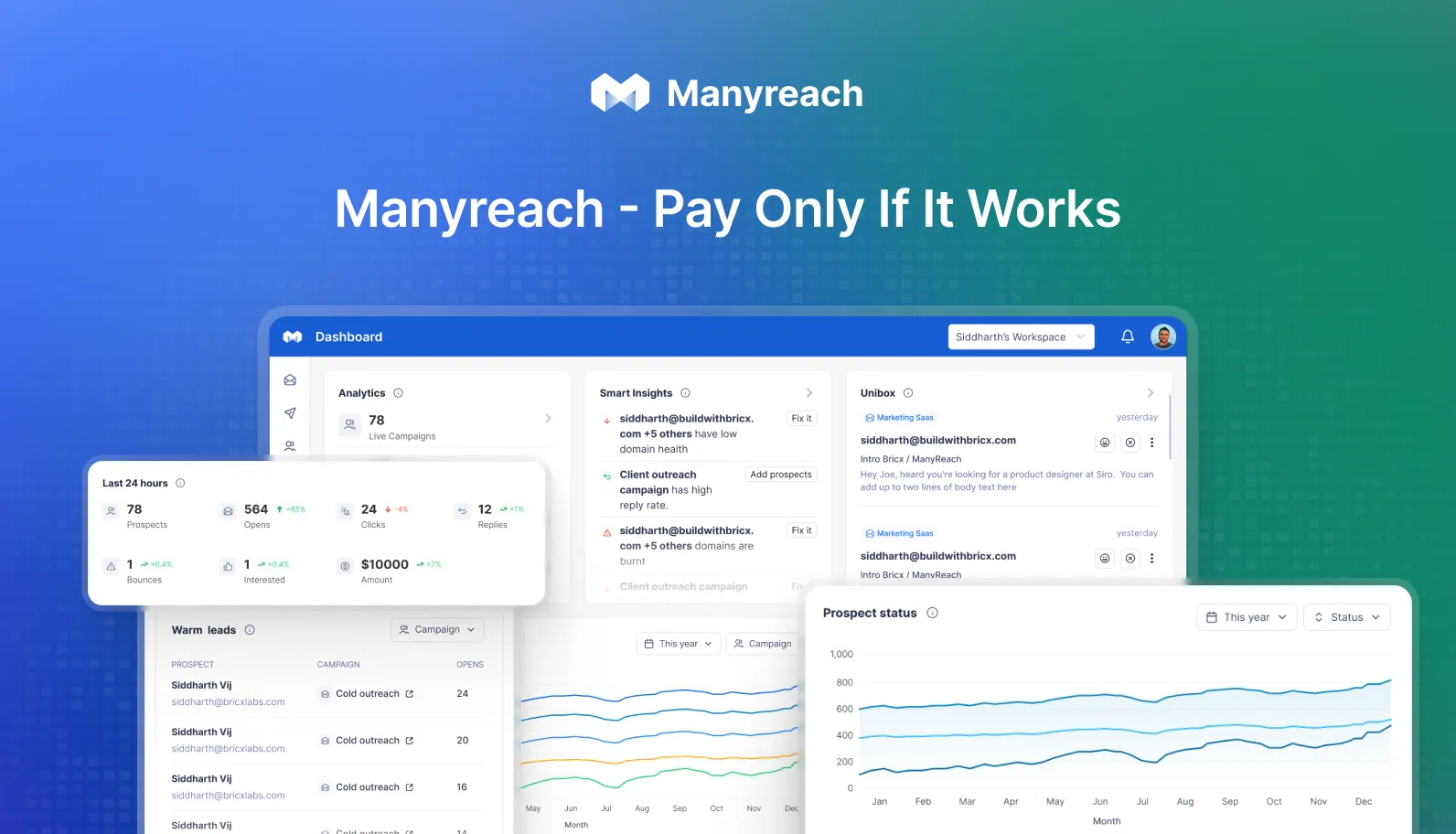 Manyreach features an easy-to-use interface and allows you to add unlimited mailboxes, prospects, and team members. Designed for agencies and small businesses, it is the most affordable cold email tool on the market without compromising deliverability or essential features. Additionally, they offer Manysenders, a done-for-you email setup service, to support beginners in outreach.
