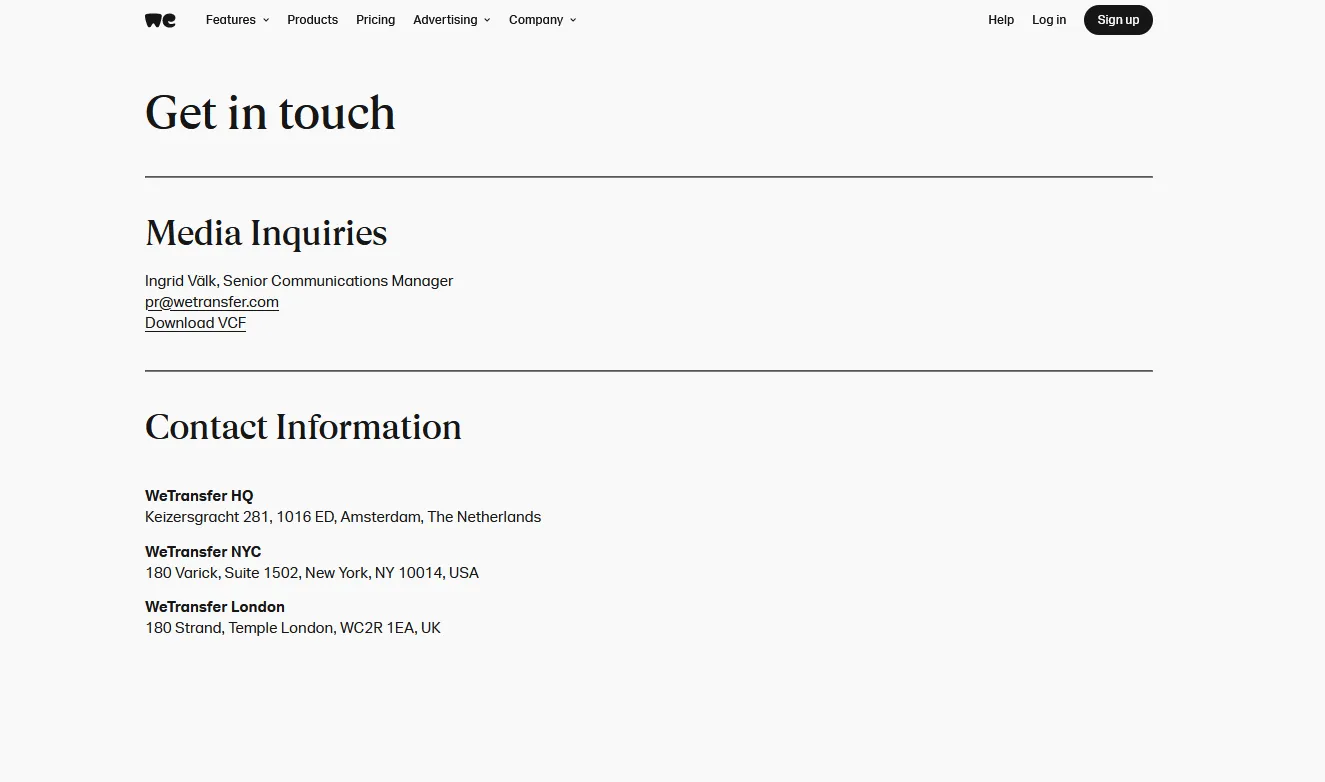 WeTransfer’s approach to customer support is notably streamlined and minimalist, reflecting its design philosophy. The Contact Us functionality is integrated into the broader site, with a focus on simplicity and accessibility. Users can reach support via a simple contact form that directs inquiries straight to the support team, ensuring queries are addressed efficiently.