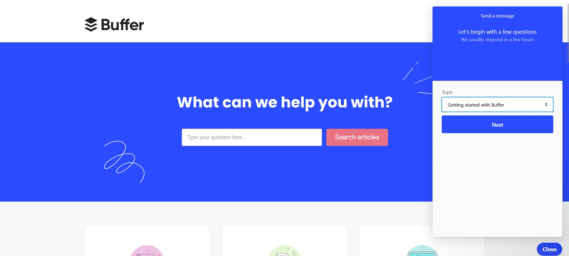 Buffer provides a Contact Us page that prioritizes user accessibility and convenience. They offer straightforward communication options, primarily centered around a direct contact form, email support, and links to extensive FAQs to help resolve common issues quickly.