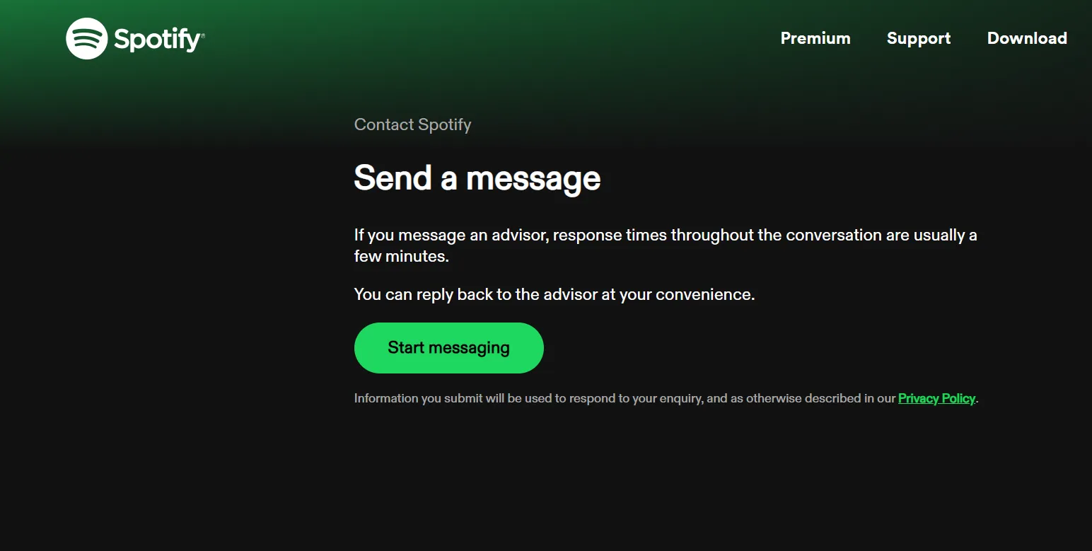 This digital-first approach aligns well with Spotify’s tech-savvy audience, providing quick and responsive contact methods that cater to a young, connected user base.