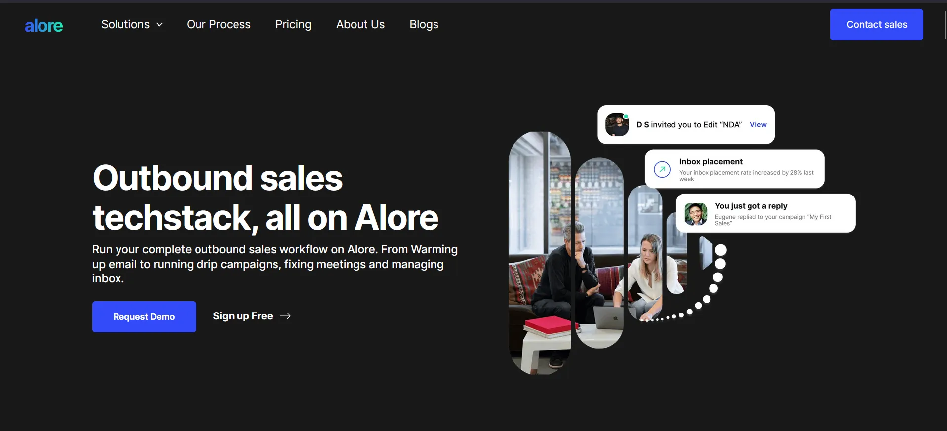 Alore.io emphasizes direct communication for sales inquiries through scheduled calls, reflecting its sales-centric service offerings. The page is straightforward, reflecting the platform's focus on efficiency and direct client engagement.