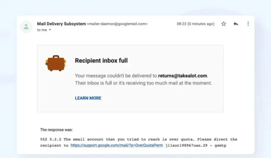 A full mailbox occurs when the recipient’s email inbox has reached its capacity and can no longer accept new emails. This situation typically results in a soft bounce, as the issue may be temporary. If the recipient does not clear space in their inbox, future emails may also bounce back.