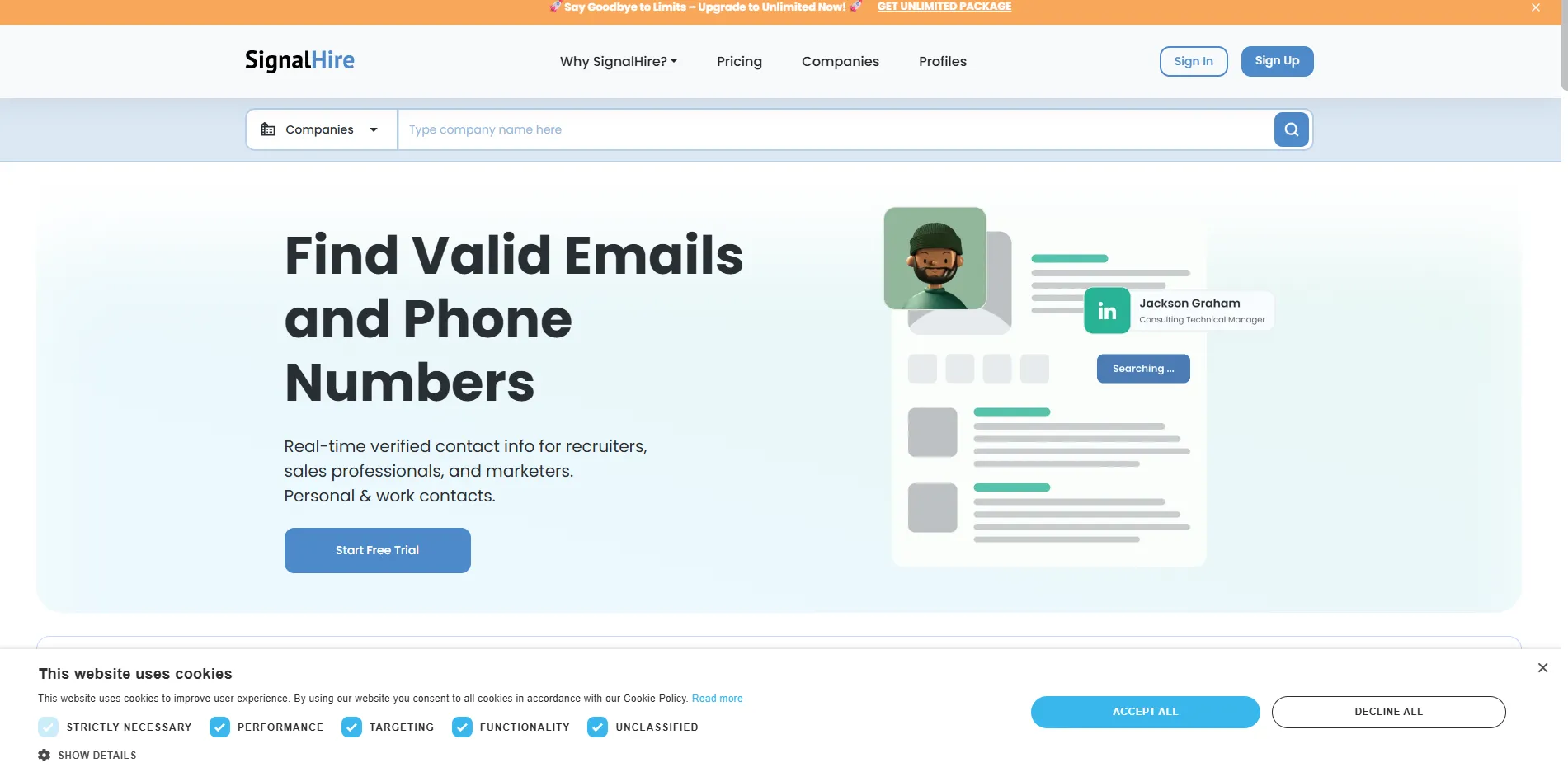 SignalHire is an email finder and enrichment platform for sales, marketing, and recruiting teams. It offers a Chrome extension plus a web app that reveals verified emails and direct dials, with export and CRM sync features.