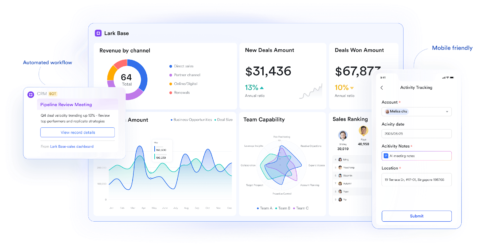 If you can't see how things are going, talking and getting permission don't mean anything. A lot of firms have trouble with spreadsheets that are all over the place and don't show them how well they're doing. Lark Sheets turns data into a shared, real-time resource that keeps teams on target and helps them finish their tasks.