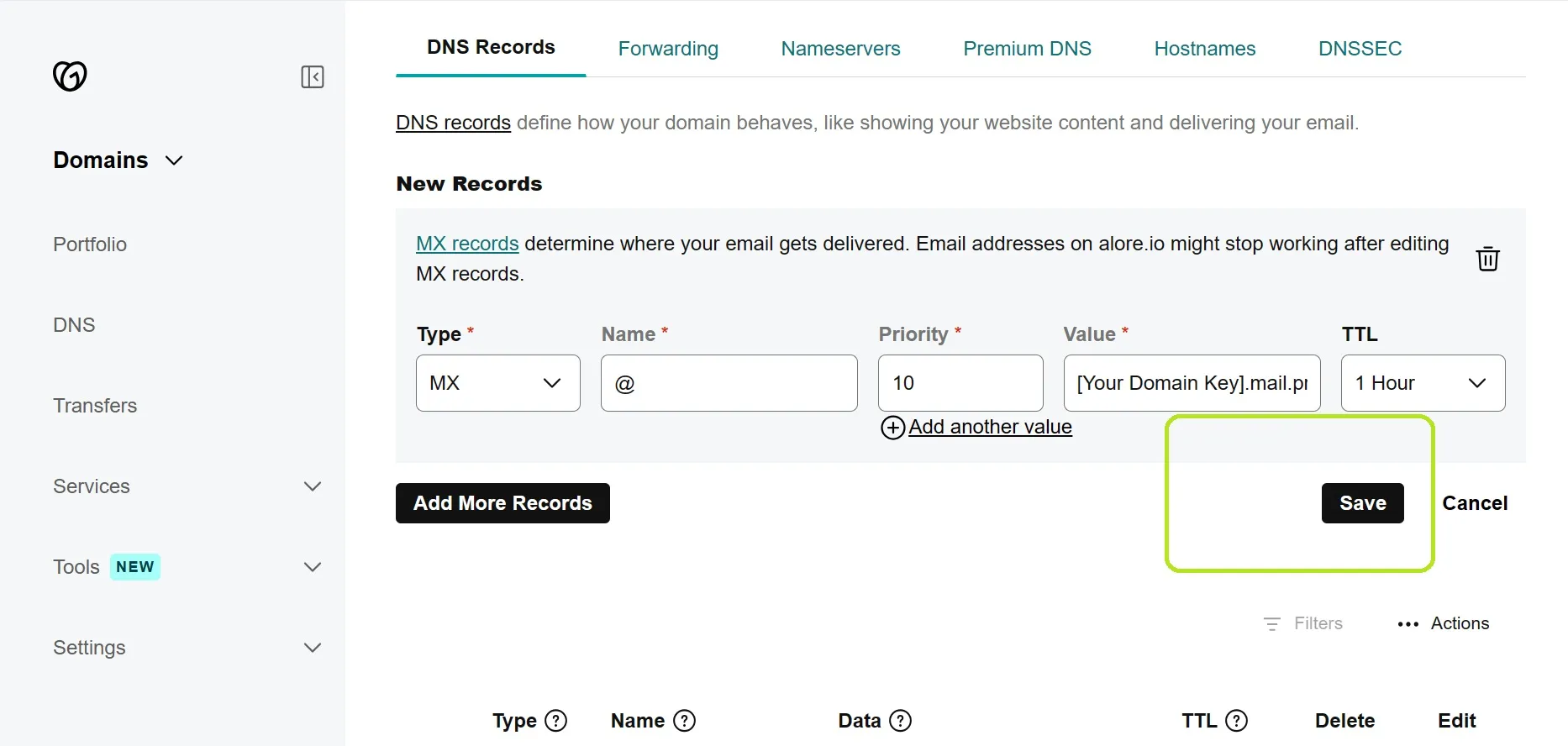 Saving Your MX Record Configuration