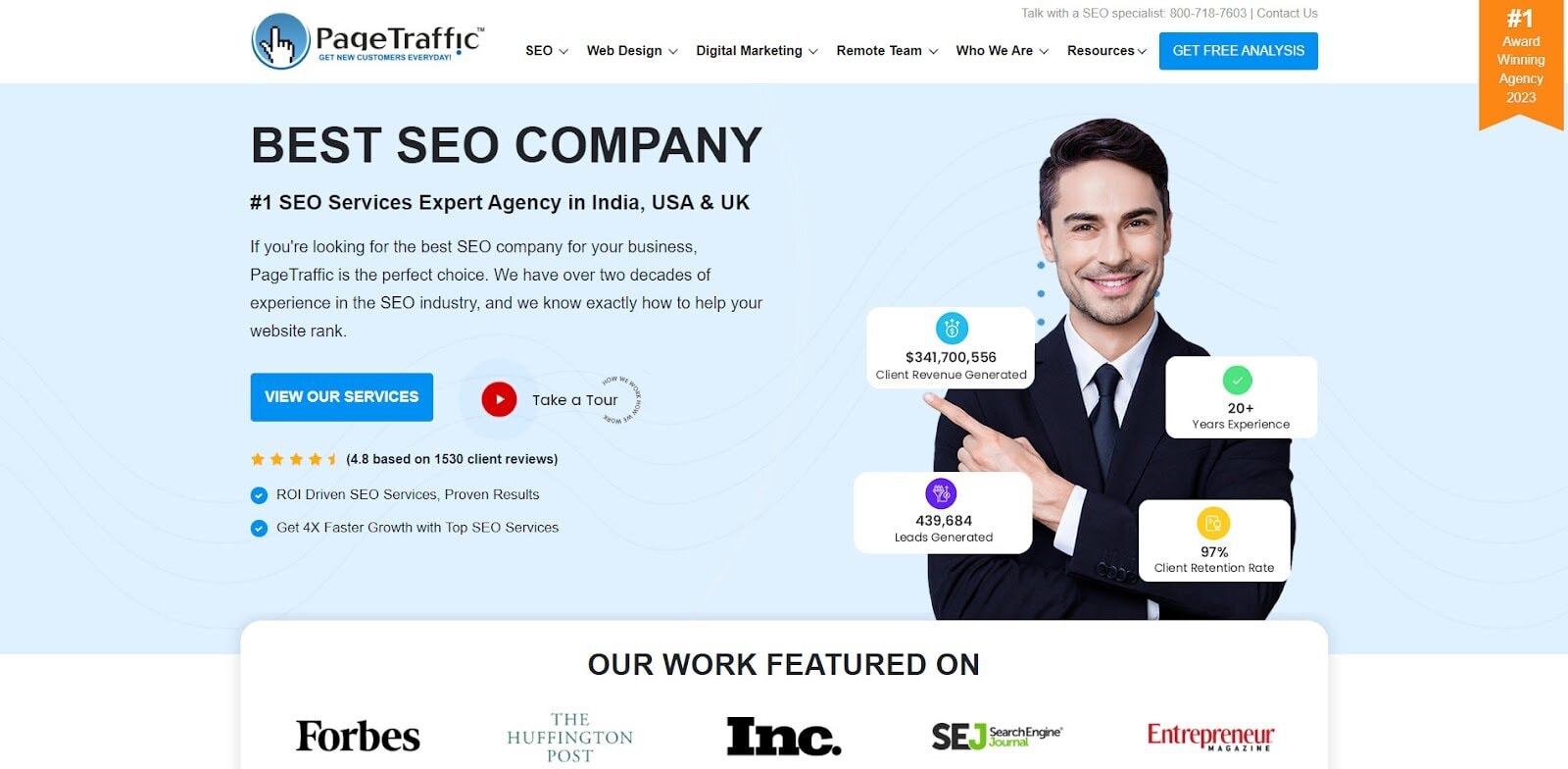 PageTraffic combines SEO optimization with full-stack digital marketing and reporting dashboards. They support technical SEO, content strategy, and link-building for consistent performance in search results.