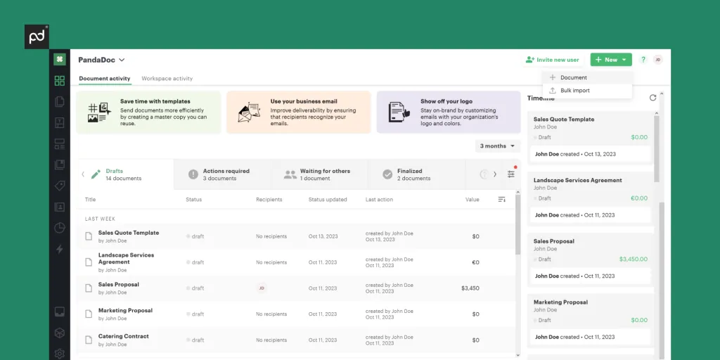 - Functionality: PandaDoc streamlines the process of creating, sending, and tracking business proposals and quotes.